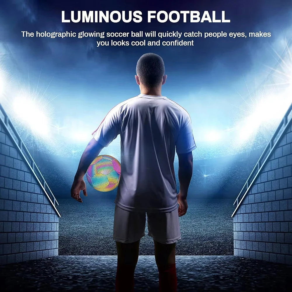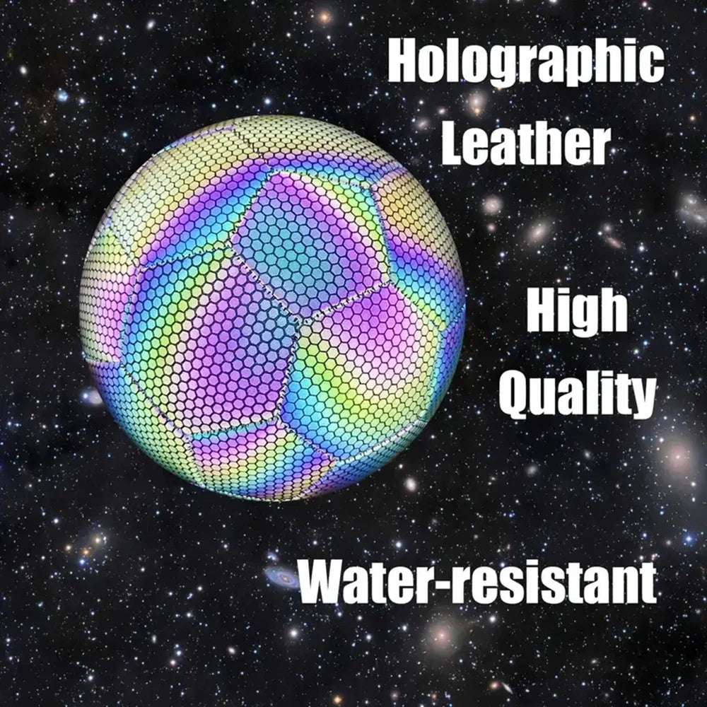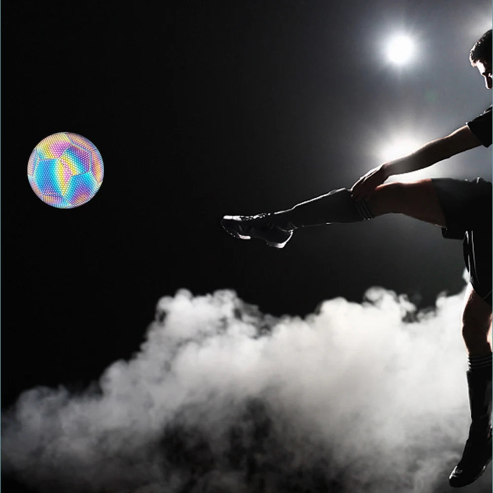 Turn every kick into a light show! The holographic reflective surface shines bright under camera flash or headlights — perfect for night games, parties, or viral social media videos.